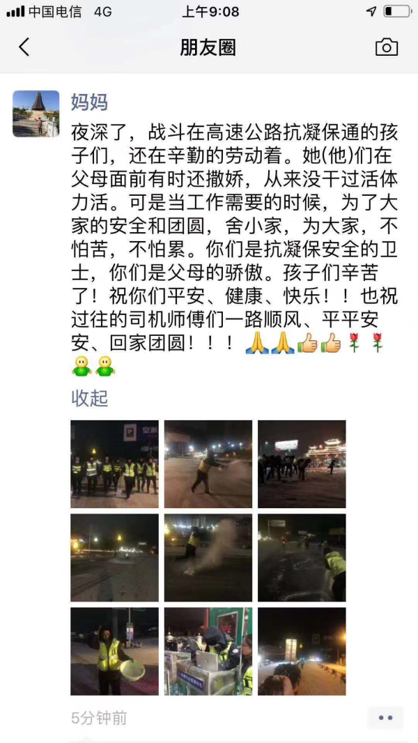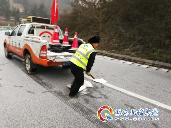 高速雪凝非小事,安全之路系萬家。一場抗凝賽跑,凝聚著所有高速人爭分奪秒,不畏艱難的抗凝精神,風(fēng)雪中傲然挺立的高速人,凍傷了雙腳,依然駐扎在抗凝保通的第一線,白加黑模式的毅然堅守,對道路交通的耐心疏導(dǎo)勸導(dǎo),提醒司乘人員對出行計劃,可向12328服務(wù)中心咨詢高速道路的實時情況。無論冰雪再大,無論前方多么艱險,也抵擋不了高速先鋒前線為民保通的強大信念,哪里有凝凍,哪里就是戰(zhàn)場!貴州高速集團(tuán)凱里營運管理中心用不屈不饒的意志執(zhí)著書寫一份人民滿意的抗凝保通答卷。