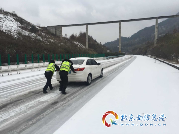 12月29日下午18點左右,一輛五型拖掛車從余慶方向潺潺駛來,到達(dá)牛大場上行匝道截流值守點時,由于匝道凝凍嚴(yán)重導(dǎo)致車輛無法繼續(xù)行駛,在牛大場匝道截流點值守的黃平中隊隊員看到現(xiàn)狀后,立即將巡邏車上的應(yīng)急鹽進(jìn)行延路鋪撒,讓車輛緩慢行駛。
