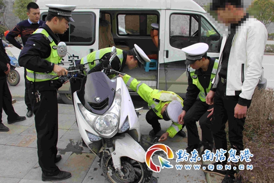 2月28日15時30分,民警在城關黎陽北路檢查車輛時,發現一輛普通二輪摩托車沿城關黎陽北路由平街頭往正陽橋方向行駛,民警通過靠邊停車的手勢示意該車輛靠邊停車接受檢查時,沒想到該車輛看到交警后,不但沒有減速慢行,靠邊停車,反而將車輛拐上了人行道,不顧人行道上行人的安危,加速向前沖撞,企圖強行闖關逃離現場。