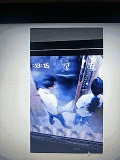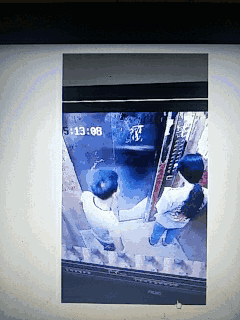 之后視頻中的兩人沒有了很大的動作,男子一直面對著女子說話,女子則一直面向電梯按鍵低著頭站著。