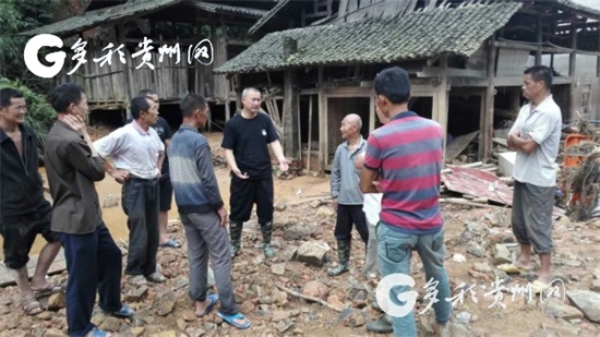 (2016年,趙光明(中)在黎平縣九潮鎮為群眾做救災政策宣傳)