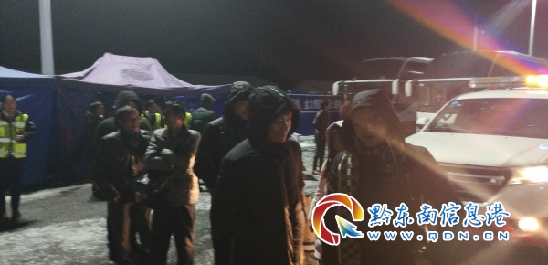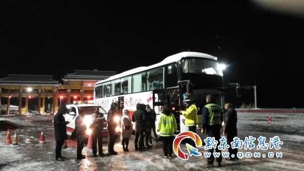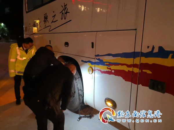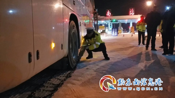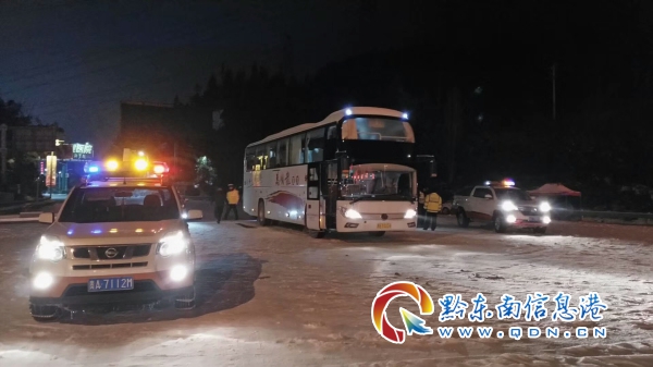 黎平縣公安局、高速交警與縣應急辦立即安排運政部門聯系兩輛客車,采取防滑措施,出發沿途接人。