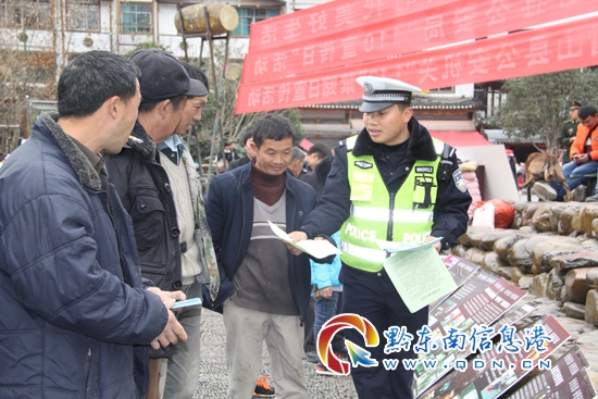 本網(wǎng)訊 1月12日,雷山縣公安局交警大隊利用丹江鎮(zhèn)城關(guān)“趕集日”人車集中時機,聯(lián)合公安、消防多警種集中開展宣傳教育活動。現(xiàn)場設置咨詢點,擺放宣傳展板,民警用通俗易懂的語言進行講解,同時向群眾發(fā)放宣傳資料,與群眾零距離接觸、面對面互動,形成全民支持、廣泛參與的良好氛圍,共促和諧富美雷山。(楊正道)