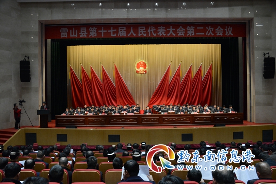 本網(wǎng)訊 1月17日下午,雷山縣第十七屆人民代表大會(huì)第二次會(huì)議在貴旅雷山會(huì)議中心隆重開幕。大會(huì)場內(nèi)懸掛“以習(xí)近平新時(shí)代中國特色社會(huì)主義思想為指導(dǎo),牢記囑托,感覺恩奮進(jìn),決勝脫貧攻堅(jiān)同步全面小康,奮力開創(chuàng)百姓富、生態(tài)的雷山綠色發(fā)展新未來!”的大橫幅。