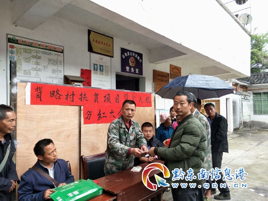 據悉,近日達地水族鄉背略村、小烏村、排老村、達地村、烏達村、高車村村集體經濟分紅大會如火如荼進行。分紅現場,各村村委樓樓前人頭攢動,大家喜笑顏開,熱鬧非凡,前來參與分紅的貧困群眾,有序簽字、按手印、領錢,個個都深切感嘆扶貧政策給他們帶來新的發展機遇,入股分紅也更加堅定了貧困群眾脫貧致富的信心和決心。本次村集體經濟共計分紅資金206768元,覆蓋773戶貧困戶,每戶獲得100至500元不等的紅利。