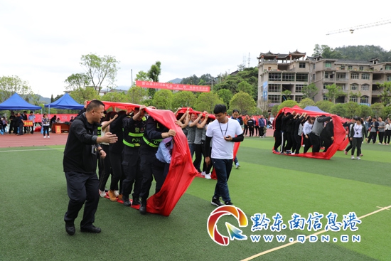 當日下午,來自全縣機關單位20余支隊伍在雷山縣第四中學田徑場進行項目比賽,比賽分別有風火輪、盲人方陣、鏈接加速、背夾球、人椅5個項目,雖然天下著毛毛細雨,每個隊都期盼著能拿好的成績。隨著哨聲響起,一陣陣加油聲,吶喊聲,回蕩在整個田徑場上,期間雷山縣公安局隊員充分發揚不怕困難、勇于挑戰的精神,憑借頑強的意志和優良的團隊作風,克服重重困難,在鏈接加速、背夾球、人椅、風火輪、四個項目奪得第一、盲人方陣第三的良好佳績。
