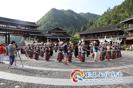 圖為拍攝組在西江景區(qū)拍攝苗族原生態(tài)蘆笙舞的情景