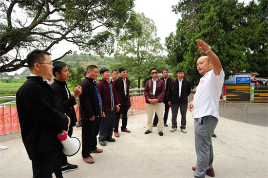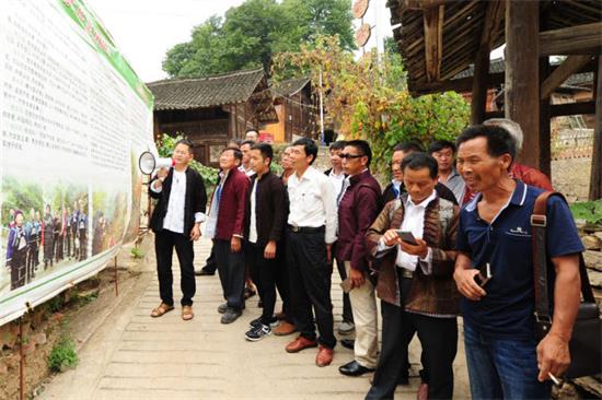↑烏的村第一書記李軼組織雷山貧困戶代表參觀仙壩村畬族村。(姚寧 李軼 王成軍 攝)
