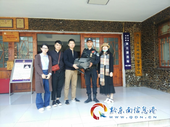 原來,廣東陽東縣許女士一行10月5日早上8時許從西江景區大北門乘坐私家車到西門“苗界”下車后,由于粗心大意,將一個灰色背包遺失在該私家車上,背包內有價值一萬多元的筆記本電腦、一千多元現金和其本人的身份證、銀行卡等貴重物品,因無私家車車主的聯系電話,也記不住車牌號碼,許女士向警方報警求助。苗寨民警接到報警后,根據許女士講述的時間和車身顏色立即調取大北門和苗界路口的監控視頻,獲取了車牌號碼后通過與該車主聯系,車主查看許女士乘坐的最后一排座位時發現座位上確實有一個灰色背包,里面物品完好無損。苗寨民警立即驅車趕到郵政局門口將許女士的背包帶回派出所交給許女士一行,許女士一行接過完好的背包,不停地對民警表示感謝。