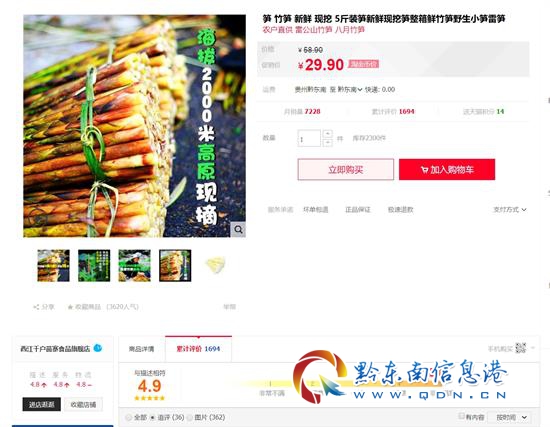 “八月筍”產(chǎn)品上線一個月,通過天貓、淘寶、雷山電商、蘇寧易購等線上平臺和西江千戶苗寨景區(qū)線下門店共銷售“八月筍”21387單,138000斤,單天貓店鋪就實現(xiàn)月銷8600單,單品全網(wǎng)排名第一,帶動村民直接增收40余萬元。從天貓店鋪顧客的評價反饋來看,產(chǎn)品好評不斷,也有顧客通過店鋪購買產(chǎn)品后提出進(jìn)一步的合作意向。(江吉 李雪)