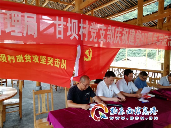 當日上午9時,凱里市市場監督管理局的領導和凱里爐山鎮甘壩村黨支部早早就來到了南山河等待活動的開始,此次的活動主要目的就是:認真總結新時期以來甘壩村脫貧攻堅的工作經驗、所取得的成績和黨建工作上的黨員先進事跡,進一步動員全村的共產黨員和積極先進分子要振奮精神、開拓創新、扎實工作,努力把甘壩村的脫貧攻堅和黨建工作提高到新的水平,為甘壩村全面建設小康而奮斗。此次參加的會議有凱里市市場監督管理局的領導徐國雄書記和人教科工作人員,甘壩村的全體黨員和入黨積極分子,來甘壩村投資創業的各個老板都參與活動。