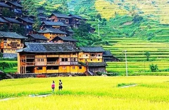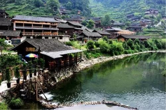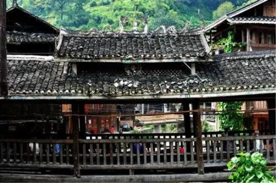 最美的肇興侗寨四面環山,寨子建于山中盆地,一條小河穿寨而過。寨中房屋為干欄式吊腳樓,鱗次櫛比,錯落有致,全部用杉木建造,硬山頂覆小青瓦,古樸實用。
