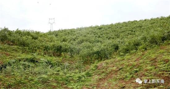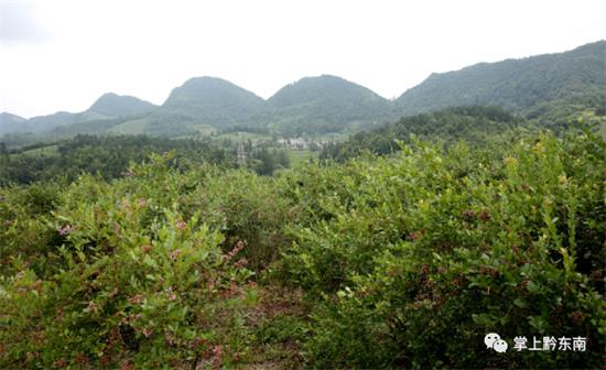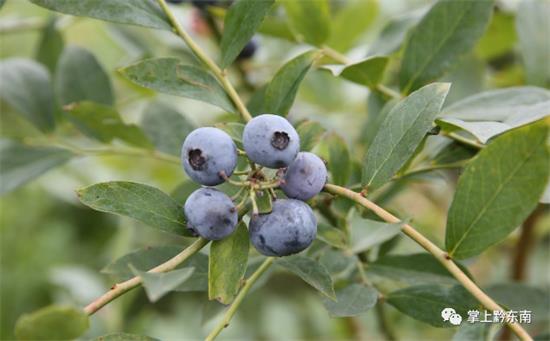 行駛十來分鐘就可以看到路旁山上漫山遍野的藍莓樹,小編發現該處的藍莓樹均種植在山間梯田上,一眼望去,一顆顆璀璨的藍色珍珠點綴于山間,風景頗好。這里就是凱里市碧波鎮王義藍莓園了。