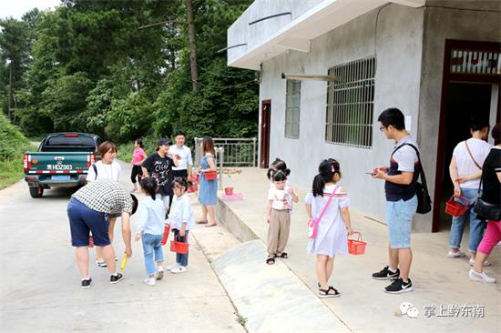 一下車,前來采摘的大人小孩都情不自禁的興奮起來,拿著采摘籃子,順著藍莓園步道,開始了采摘體驗。一時間幽靜的藍莓園便充滿了歡聲笑語。看著成串的果實在低矮的翠綠枝頭上,隨風擺動,散發著誘人的果香,大家紛紛品嘗起來,摘一顆熟透果子放在嘴里,飽滿的漿汁,滿口的清香,想想就很幸福,其間竟然讓大家忘記了烈日酷暑。