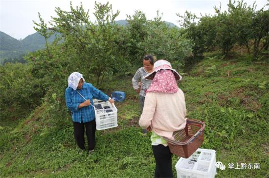 據藍莓園的主人張繡芬介紹,果園里的藍莓已種植5年之久,均施農家肥,且以果實大、香味濃、甜度高等特點見長,深受市民喜愛。她家的藍莓園去年產量達到3.5萬斤,今年產量又有所增加,目前估算應該達到4萬多斤。隨著藍莓的成熟上市,她們還聘請了幾十名親戚朋友來幫忙采摘,平時有20-30人,旺季需要50-60人,今年采摘的藍莓主要銷售到麻江和凱里城區。許多市民購買她家的藍莓制作藍莓酒反映味道和口感不錯,且價格也很實惠。