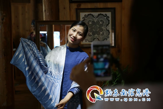 如今,走上創業之路的張義蘋有了更大的夢想,她說:“我有一個夢想,就是要用現代的設計理念和經營模式做出自己品牌的蠟染產品,借產品之力把苗族蠟染文化傳播出去,讓古老而質樸的藍色圖騰給予世界新的色彩”。(黃曉海 攝影報道)