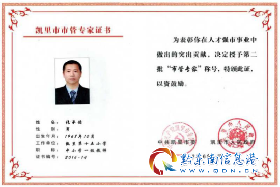2016年被凱里市人民政府授予“市管專家”稱號,享受政府特殊津貼。