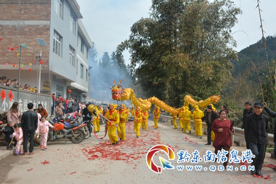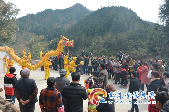 本網(wǎng)訊 2月23日,狗年正月初八,從江縣貫洞鎮(zhèn)八洛村熱鬧非凡,人頭攢動,村里舞起了龍燈,廣西梅林鄉(xiāng)匡里村群眾到從江縣貫洞鎮(zhèn)八洛村“吃相思”共慶新年。