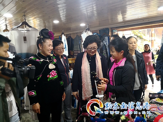 在對(duì)“母親健康快車”項(xiàng)目實(shí)施點(diǎn)凱里市婦幼保健院、凱里經(jīng)濟(jì)開(kāi)發(fā)區(qū)苗妹銀飾婦女手工產(chǎn)業(yè)基地、雷山縣阿幼民族文化館等進(jìn)行實(shí)地調(diào)研后。調(diào)研組一行對(duì)黔東南州婦聯(lián)基層組織工作和婦女創(chuàng)業(yè)脫貧工作給予了充分肯定,甄硯副理事長(zhǎng)非常感觸地說(shuō):“看到新農(nóng)村發(fā)展很好,說(shuō)明我們黨委政府領(lǐng)導(dǎo)干部了不起;我們婦聯(lián)了不起,婦聯(lián)能夠深度的參與到脫貧攻堅(jiān)、經(jīng)濟(jì)建設(shè)之中,幫助和扶持一批農(nóng)村婦女成為了發(fā)家致富、脫貧攻堅(jiān)的領(lǐng)頭人、領(lǐng)辦人;我們民族文化博大精深,豐富多彩,非常了不起,我們要傳承,要把指尖技藝變?yōu)橹讣饨?jīng)濟(jì),展現(xiàn)出來(lái)。”