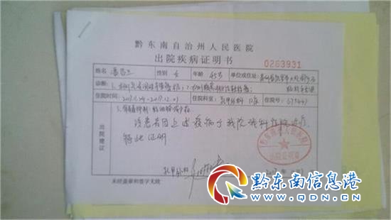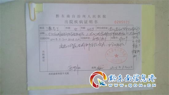 考慮到母親的病不能再耽擱,2017年10月國慶期間,王天楠和父親立即把她接回凱里,并辦理了黔東南州人民醫院的入院手續,并于10月27日,母親在醫院做了雙乳摘除。