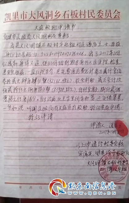 本網訊(記者 姜芳) “ 我媽媽(患者)叫潘昌蘭,今年才45歲,13年被檢查出患有惡性腫瘤乳腺癌,從去年10月底開始,我媽媽開始在黔東南州人民醫院接受手術治療和15天一次的化學治療。由于連續高昂的治療費用,家庭僅有的5萬元積蓄和特意向親戚借來的2萬元錢都花光了,對于媽媽的治療我們不想也不能中途結束......”