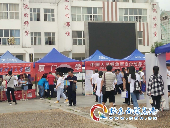 本網(wǎng)訊 (記者 蔡江蘭)6月26日,2018年貴州高考志愿填報(bào)現(xiàn)場咨詢活動(dòng)凱里站在凱里一中順利舉行,本次活動(dòng)由黔東南州招生院、貴州都市報(bào)聯(lián)合舉辦。來自全國各地的100余所高校的招生老師在咨詢活動(dòng)現(xiàn)場擺攤設(shè)點(diǎn),就 填報(bào)高考志愿的相關(guān)問題為考生和家長答疑解惑。