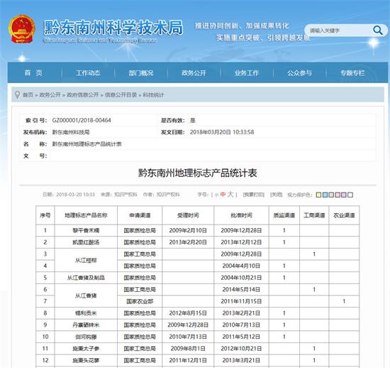 截止目前,黔東南累計獲得地理標志保護產品31件,其中質監渠道18件、工商渠道9件、農業渠道 4 件,位列全省第三。