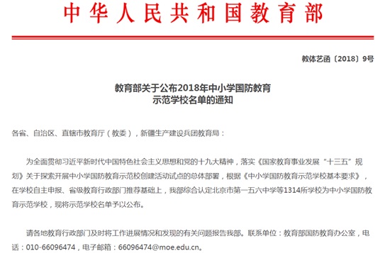 據(jù)悉,示范學(xué)校創(chuàng)建以立德樹人為根本任務(wù),以提高青少年綜合國防素質(zhì)為基本要求,將國防教育納入國民教育體系,融國防教育于課堂教育教學(xué)、綜合實踐活動和專題教育項目之中,著力強(qiáng)化育人功能,著力創(chuàng)新方式方法,著力加強(qiáng)條件保障,不斷健全校內(nèi)校外密切結(jié)合的學(xué)校國防教育網(wǎng)絡(luò),切實提高學(xué)校國防教育工作質(zhì)量。
