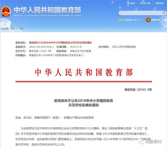 教育部將在“十三五”期間持續開展示范學校認定公布工作,對經遴選認定的學校命名為“中小學國防教育示范學校”,并給予一定經費支持。適時組織開展示范學校創建工作經驗交流。對學校國防教育工作和示范學校創建活動開展好的地區探索設立試點縣或試驗區,開展區域試點。