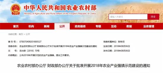 2018年中央財政農業產業強鎮示范建設獎補資金已經下達。各省要根據通過審查的示范鎮具體情況,按照相關因素測算下達中央財政獎補資金,其中分配給貧困縣的要落實好貧困縣涉農資金整合政策要求,體現帶貧減貧效果。