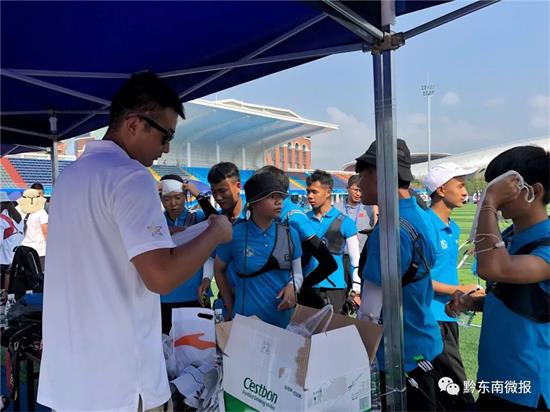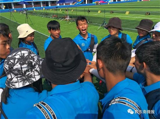 領隊龍建斌介紹,黔東南射箭隊從2017年5月開始籌備建立,共40人備訓,最終選出了16人參賽。為了滿足隊員訓練需求,在黎平四中修建了一個訓練場,“條件比較簡陋,加上選手都是初高中學生,學業繁重,除寒暑假外,每天訓練時間僅一個小時,與建隊時間長、每天系統訓練的隊伍相比還有很大的差距。”