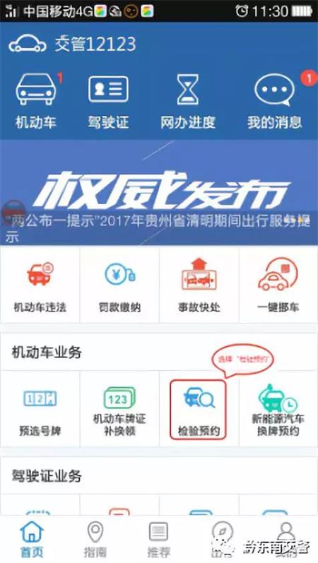 “貴州交警”app車檢預(yù)約步驟