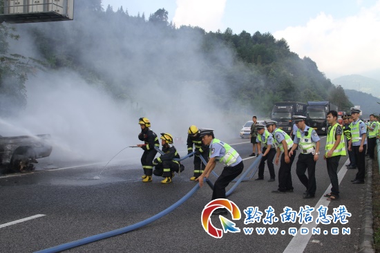 事發后,黔東南州公安局交警支隊高速六大隊民警驅車火速趕赴事故現場,同時通知轄區消防和一路三方等部門前往。