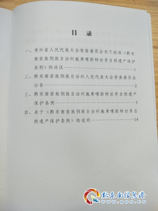 為了有效保護、管理和合理利用施秉喀斯特世界自然遺產資源,根據《中華人民共和國民族區域自治法》等有關法律法規的規定,結合自治州實際,制定本條例。會上,黔東南州人大內司委主任委員白朝貴介紹,本條例立法的意義在于四個“需要”。即世界自然遺產保護的需要;保護良好生態環境,促進可持續發展的需要;開展教學、科研的需要;保護旅游資源,發展旅游的需要。