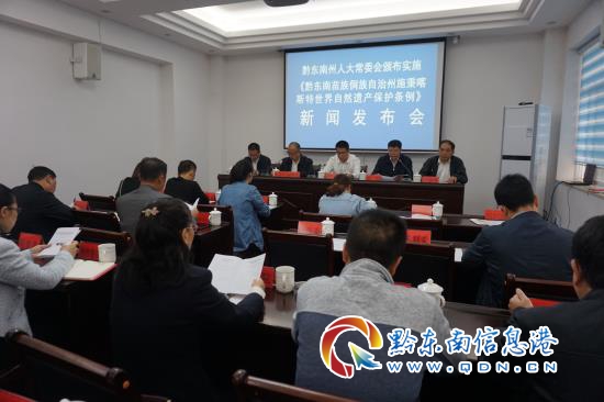 發布會上,黔東南州人大常委副主任吳明宣讀《貴州省人民代表大會常務委員會關于批準<黔東南苗族侗族自治州施秉客斯特世界自然遺產保護條例>的決議》和州人大常委會公告;州委常委、州人民政府副州長沈翔發表重要講話。