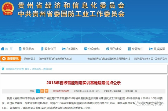 公示時間為2018年10月8日至14日,網友如有異議,可將意見以書面(實名)形式反饋貴州省經濟和信息化委裝備工業處。聯系人:吳熙,聯系電話:0851-86892321;傳 真:0851-86892907;E-mail:[email protected]。