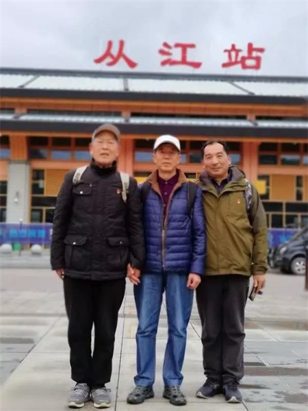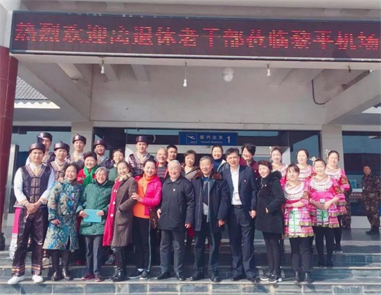 貴州省機場集團有限公司黎平機場分公司黨委書記、黎平機場改擴建項目指揮部指揮長潘志堅(右二)迎接老同志的到來