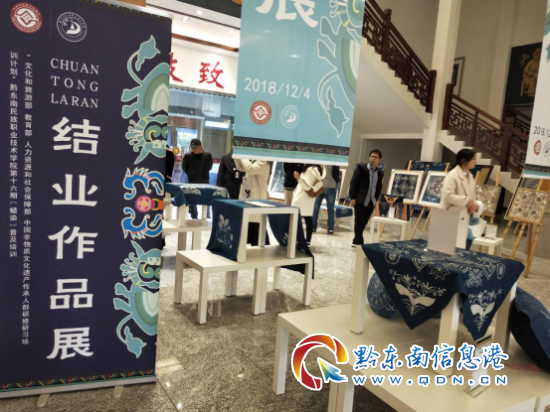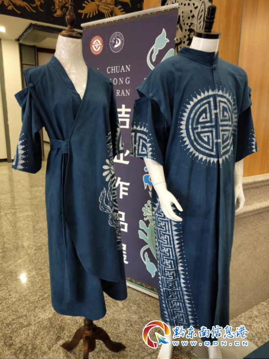 為期30天的培訓(xùn)結(jié)束后,學(xué)員們對(duì)蠟染的材料與工具、傳統(tǒng)蠟染圖案的文化內(nèi)涵等有了更進(jìn)一步的了解,在畢業(yè)典禮現(xiàn)場(chǎng)60名學(xué)員以展覽與模特T臺(tái)走秀的方式結(jié)合,展示自己在一個(gè)月的學(xué)習(xí)實(shí)踐中所設(shè)計(jì)的作品,其中主要包括《蠟染服飾·圓滿》親子裝-禮服系列、《簡(jiǎn)語·舒和》茶道布藝用品、《蠟染·和鳴》、《蠟染·茶韻空間》、《蠟染·桌布系列》、《蠟染·其他系列》等大小作品100余件,既有傳統(tǒng)紋樣與服飾相結(jié)合,也有苗侗文化與旅游商品的結(jié)合,廣大學(xué)員匠心獨(dú)具,用自己的設(shè)計(jì)靈感結(jié)合傳統(tǒng)故事、傳統(tǒng)紋樣,把作品寓意及功能表現(xiàn)的淋漓盡致。