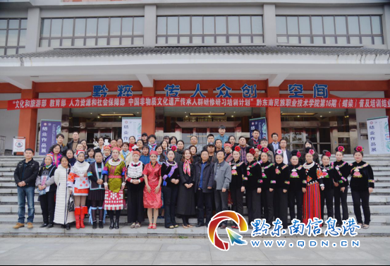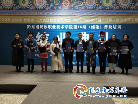 本網(wǎng)訊 近日,“文化和旅游部、教育部、人力資源和社會(huì)保障部中國(guó)非物質(zhì)文化遺產(chǎn)傳承人群研修研習(xí)培訓(xùn)計(jì)劃”第十六期(蠟染)培訓(xùn)結(jié)業(yè)典禮在黔東南民族職業(yè)技術(shù)學(xué)院舉行。結(jié)業(yè)典禮由民族文化創(chuàng)意產(chǎn)業(yè)系黨總支副書記(主持工作)鄭凱平主持。典禮上,學(xué)校為60名參加培訓(xùn)的學(xué)員頒發(fā)結(jié)業(yè)證書,并為部分優(yōu)秀的學(xué)員頒發(fā)優(yōu)秀學(xué)員榮譽(yù)證書。