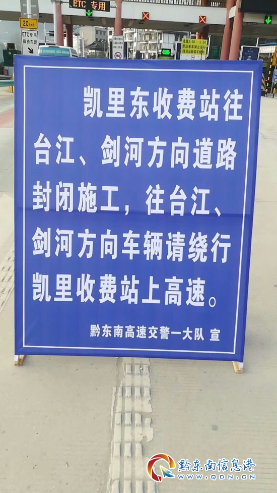 據記者了解,此次施工時間為2018年12月18日13時-2018年12月21日,每天7:00-19:00,其他時間正常通行。交警溫馨提示,從凱里東站往臺江、劍河、雷山方向的車輛,請繞行凱里收費站(民族文化宮方向)上高速。
