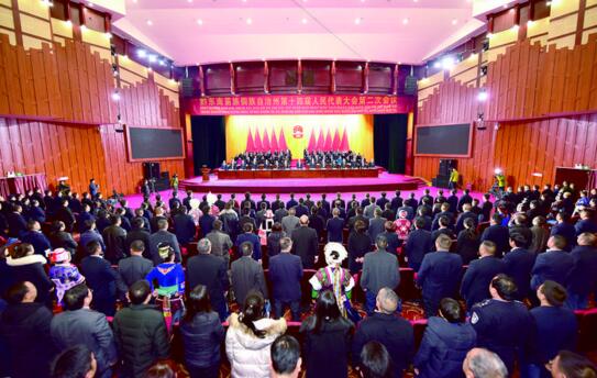 在全體起立奏唱國歌后,桑維亮宣布:黔東南苗族侗族自治州第十四屆人民代表大會(huì)第二次會(huì)議閉幕。
