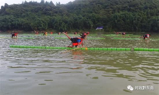 榕江民族中學教師楊成竹:“現在來說他們是零基礎開始的,動作最難的就是金雞獨立,燕式平衡,在陸地上能做的動作,在水上要很多天才能做得到一個動作。”