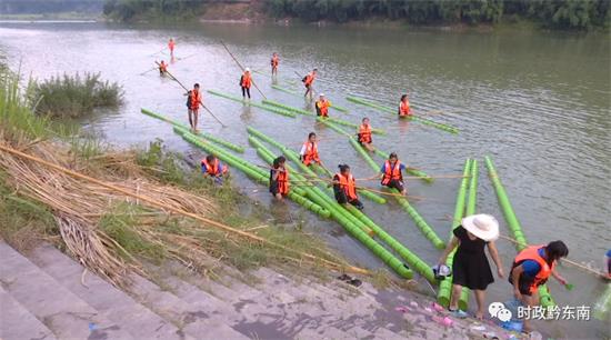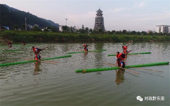 “獨竹漂”是發源于貴州赤水河流域的一種獨特的民間絕技,獨竹漂運動是人們赤足站立于一根筆直的竹竿上,依靠小竹竿劃動達到水上漂行的一項民族傳統體育項目。2007年,榕江縣將獨竹漂項目引入校園,并在榕江縣民族中學推廣。