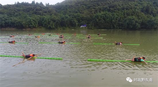 在獨竹漂訓練場,這里的學生參加獨竹漂訓練已經一個多月了,大部分學生都是零基礎,由于天氣熱,水勢不穩定,加上他們練習的是技巧獨竹漂,學習比較困難。