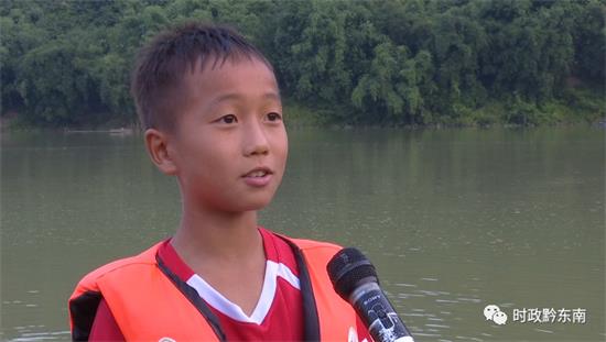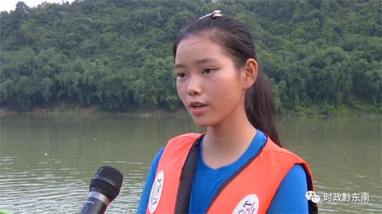 榕江民族中學學生李南燕:“我參加這個獨竹漂我學會了游泳,還結交了很多朋友,還鍛煉了自己的身體素質。”