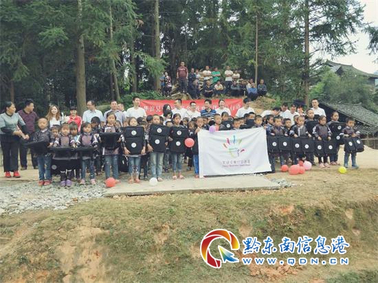 當(dāng)天一早,高懂苗寨全村男女老少穿著民族盛裝、載歌載舞,與捐建方一起歡慶新幼兒園的奠基儀式。