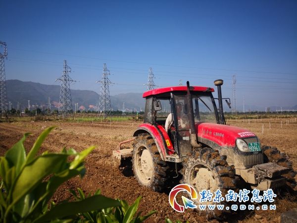 榕江縣古州鎮車江大壩現代高效農業示范園區,農機車在蔬菜基地上耕作 楊曉燕攝