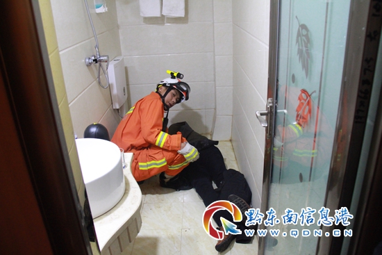 本網(wǎng)訊 1月25日00時(shí)17分,施秉縣城關(guān)鎮(zhèn)舞陽(yáng)河酒店一男子被卡便池,情況緊急。接到報(bào)警后,當(dāng)?shù)叵拦俦s往現(xiàn)場(chǎng)救援。