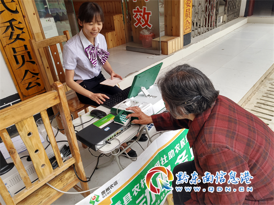 正當(dāng)工作人員準(zhǔn)備收拾設(shè)備往返時(shí),在不遠(yuǎn)處看見了65歲的劉永芝老人拄著拐杖向活動(dòng)室走來,工作員立馬起身前攙扶老人來辦理業(yè)務(wù),老人一邊辦理業(yè)務(wù)一邊與工作員交談道:“不好意思啊,我曉得你們今天要來的,本來還打算早點(diǎn)來,但腿患風(fēng)濕病,動(dòng)作麻利不起來,耽擱你們咯。”“老奶奶,您不要這么說,都是我們應(yīng)該做的,下次您有需要,直接打我們電話,我們上門為您服務(wù)。”“就是因?yàn)橥炔宦槔郧拔依鲜切慕拐(gè)辦業(yè)務(wù),自從你們定期來我們村辦業(yè)務(wù),我就沒有了這個(gè)擔(dān)心,現(xiàn)在你們還可以直接上門服務(wù),在家就能辦好了,謝謝國家的政策好,謝謝你們服務(wù)太周到啊。”