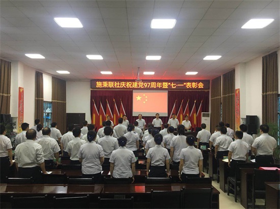 會上,全體黨員面對鮮艷的黨旗,重溫入黨誓詞,觀看了姜仕坤等人的先進事跡視頻,對2017-2018年度優秀共產黨員、黨員先鋒崗進行了表彰并現場頒發了榮譽證書�?h聯社黨委書記、理事長明道江圍繞國有企業黨的建設相關內容為參會人員上了一堂生動的黨課,并傳達了“省聯社2017-2018年度‘七·一’表彰會精神”。在會議總結時強調:一是要繼續秉承“根在農村、命在農業、情系農民”價值信念,始終堅持支農支小市場定位,深入開展“五張名片”普惠金融相關工作,以實際行動助推脫貧攻堅、鄉村振興的正確航向。二是要加強學習,以“兩學一做”常態化制度化教育為契機,以黨的十九大精神、國有企業黨的建設相關理論學習為抓手,重點推進“春風行動”、農商行改制、助農脫貧攻堅等重點工作。三是要抓好黨建促發展工作。要講政治、守規矩,牢固樹立“四個意識”,為發展提供政治保障;要規范基層組織管理,激發基層組織活力,深抓黨建扶貧等工作,為發展提供組織保障;要建立健全能上能下、激勵約束、嚴管厚愛、容錯糾錯機制,為發展提供人才力量。要認真落實從嚴治黨主體責任,全力支持紀委履行監督責任,為發展提供紀律保障。四是要堅持有為才有位。要以先進為榜樣,以真真實實的實干苦干和更加昂揚的斗志,創先爭優,開拓進取,以新作為換取新成就,以新成就助推施秉農信新發展。(施秉縣聯社 盧朝陽)